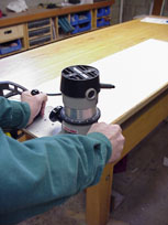 Maintain downward force on trim base handle to prevent unit tipping and gouging the work piece. Start cutting at the juncture of the edging and laminate/plywood moving along the length of the work.