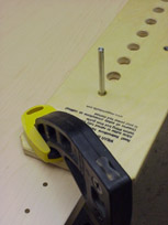 Determine placement of borings and thread stop pins into guide.