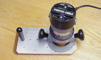 Disconnect router from electrical supply. Install bit in router. Remove router sub base and secure router to aluminum tool body using pan head screws provided, aligning router handles as illustrated. Router handles must be on long axis of base. (note: be certain to use the appropriate screws for your router) Thread handle into trim base.