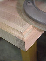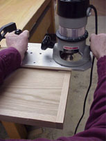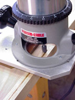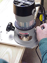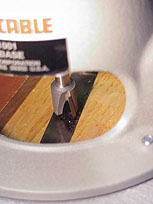 Maintain downward force on trim base handle to prevent unit tipping and gouging the work piece. Start cutting at the juncture of the edging and laminate/plywood moving along the length of the work.