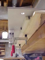 With work secured to bench, clamp guide to work piece, stop pins and end stop against edges of work.